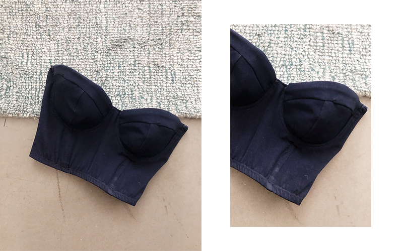 First I started with the top! I decided to make this part "detachable" so that if I was feeling extra cold (or naked), I could put on a warmer top. Here I used Orange Lingerie's Esplanade Bra. It's not perfect. I burnt it a bit with the iron (lol) and the bottom band stitching could be better. I wrestled with this project so much.