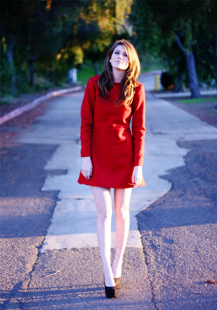 And here we have the COS inspired dress. I'm pretty excited about it! I wasn't really expecting to find felted wool at my fabric store but they had this red color. I originally planned to do something a little bit more muted but I wanted to try making it in the same fabric of the COS dress. I didn't look very hard for a pattern, and I was eager to get started. Instead of hunting for the right pattern I found this Burdastyle Basic Bodice pattern and cropped it a bit. The skirt was pretty easy, just an a-line skirt. An easy google search taught me how to make those. Since the skirt on the dress starts pretty high up I figured I didn't need darts. Turned out pretty well!! I have another fabric that isn't as stiff as this one that I'm super excited to try. Such a rad feeling of being able to look at something and make it.